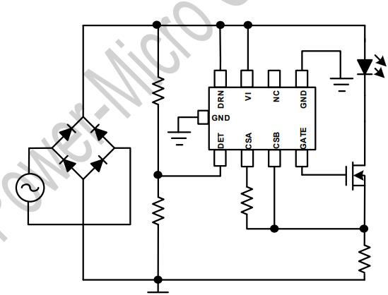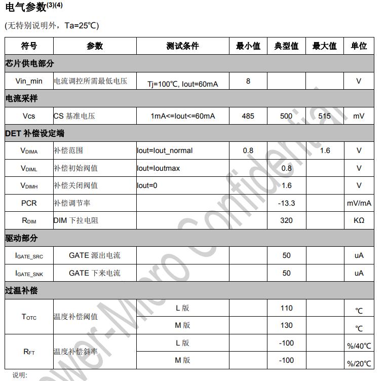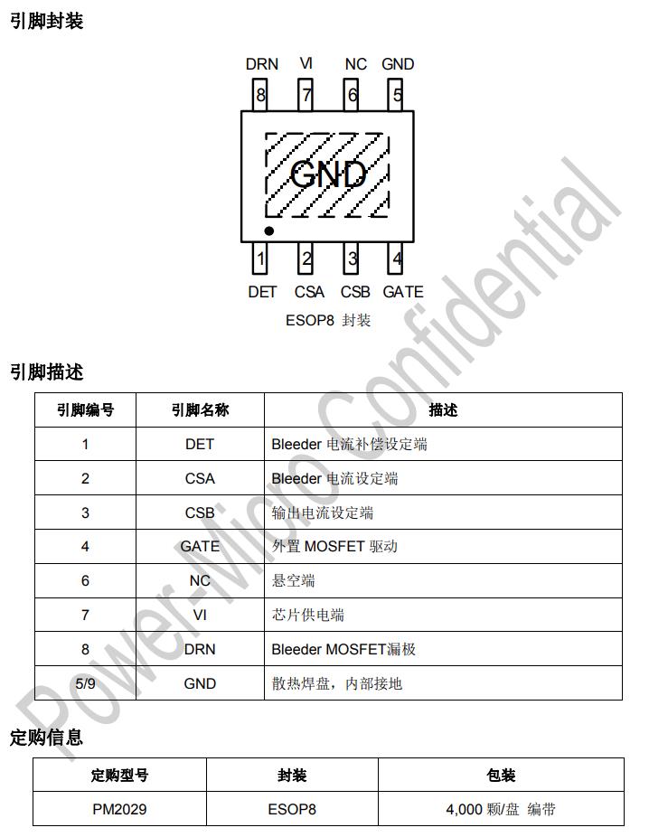 PM2029是一款大功率可控硅調光線性驅動芯片, 電源系統(tǒng)結構簡單,只需很少的外圍元件就可以 實現(xiàn)非常優(yōu)秀的恒流特性。在實現(xiàn)精簡的外圍電 路、較小的驅動器體積的同時,大大降低了系統(tǒng) 成本。 PM2029內部集成了兩個固定恒流源,一路控制 BLEEDER電流,一路驅動外置MOS,可滿足大 功率可控硅調光的照明應用。 PM2029采用了500V的高壓半導體制造工藝以 確保市電瞬變時的可靠性;內部集成了過溫度補 償電路以避免驅動器的熱失效。PM2029還集成 了各種保護功能,包括輸出開路、CS開路保護。 從而提高了LED恒流電源的可靠性。